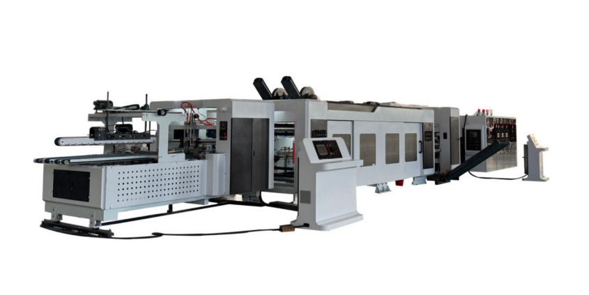 The fully automatic high-speed folding printing and gluing box linkage line is a highly automated, high-speed, and intelligent cardboard box production line. This machine is composed of a paper feeding section, a gluing section, a folding section, acounting and discharging section, and a packaging section. It has a simple, fast, reliable, and accurate control mode, which is high-speed, energy-saving, and saves labor costs. The color LCD touch mode control screen can simplify the size setting of the cardboard box and display various operation information. It is divided into five parts: paper feeding, printing, die-cutting, folding, box gluing, and bundling.